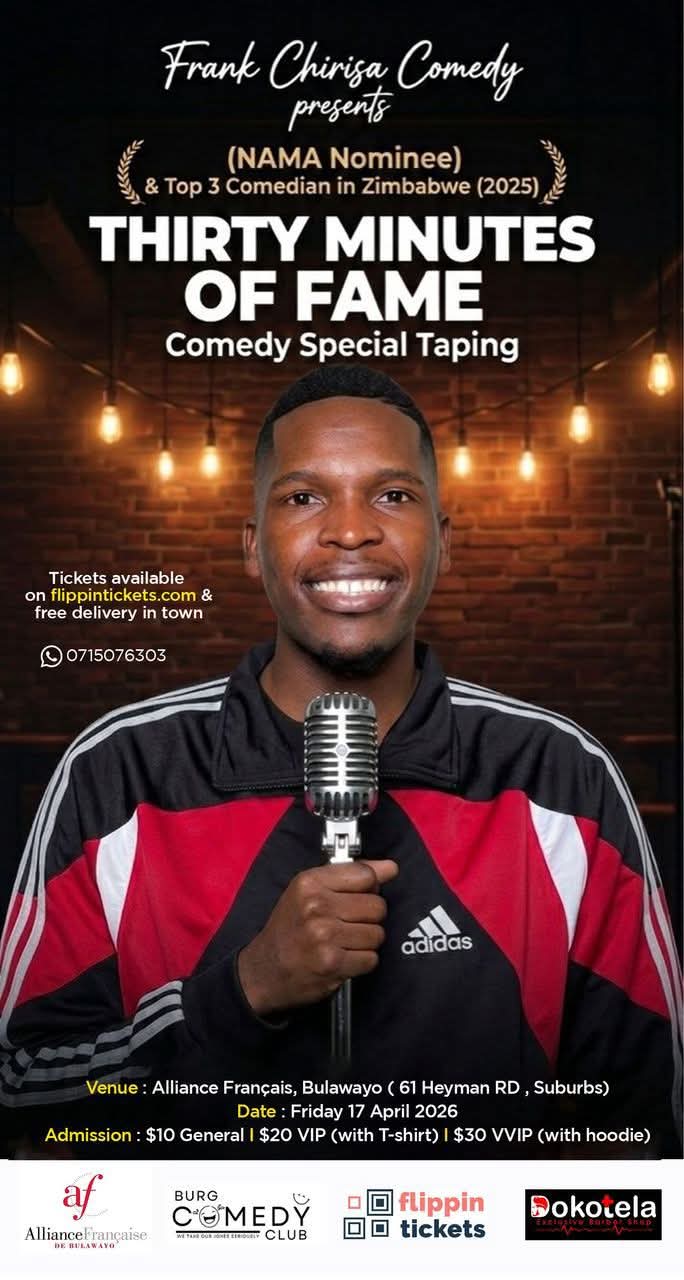 Friday 17th April (5pm): “50 Minutes of Fame” comedy show with Frank Chirisa.